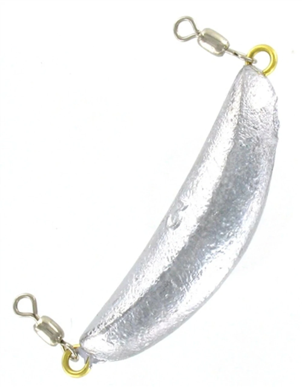 Lead Mooching Weights commonly used when employing the mooching technique targeting freshwater salmon. Swivels are attached to each of the two eyelet rings. The banana shape makes these weights ideal for the mooching technique for which they get their name. This shape is less apt to snag up and much easier to free should it occur. We offer the Lead Mooching Weights in 8 sizes: 1oz – 8oz.