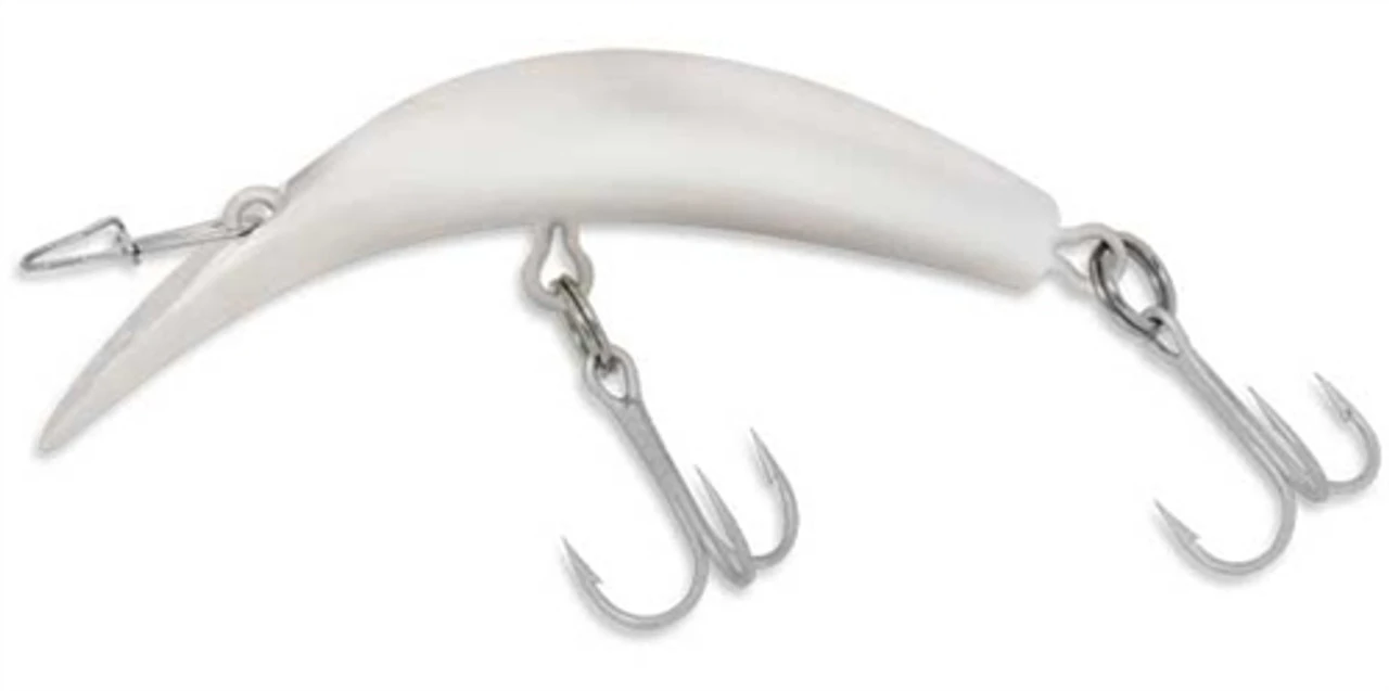 The Luhr Jensen Kwikfish is a “banana-shaped”plug that has high action at even slow trolling speeds. Its body shape, weight, and lip design make it a greatdiving lure. It can be plunked, trolled or backtrolled from a boat and fished on a flatline (without a weight),in combination with a Jet Diver or with a sinker depending on river size, water depth, or current speed.Bank anglers use this popular lure by employing thecast/swing/retrieve method.