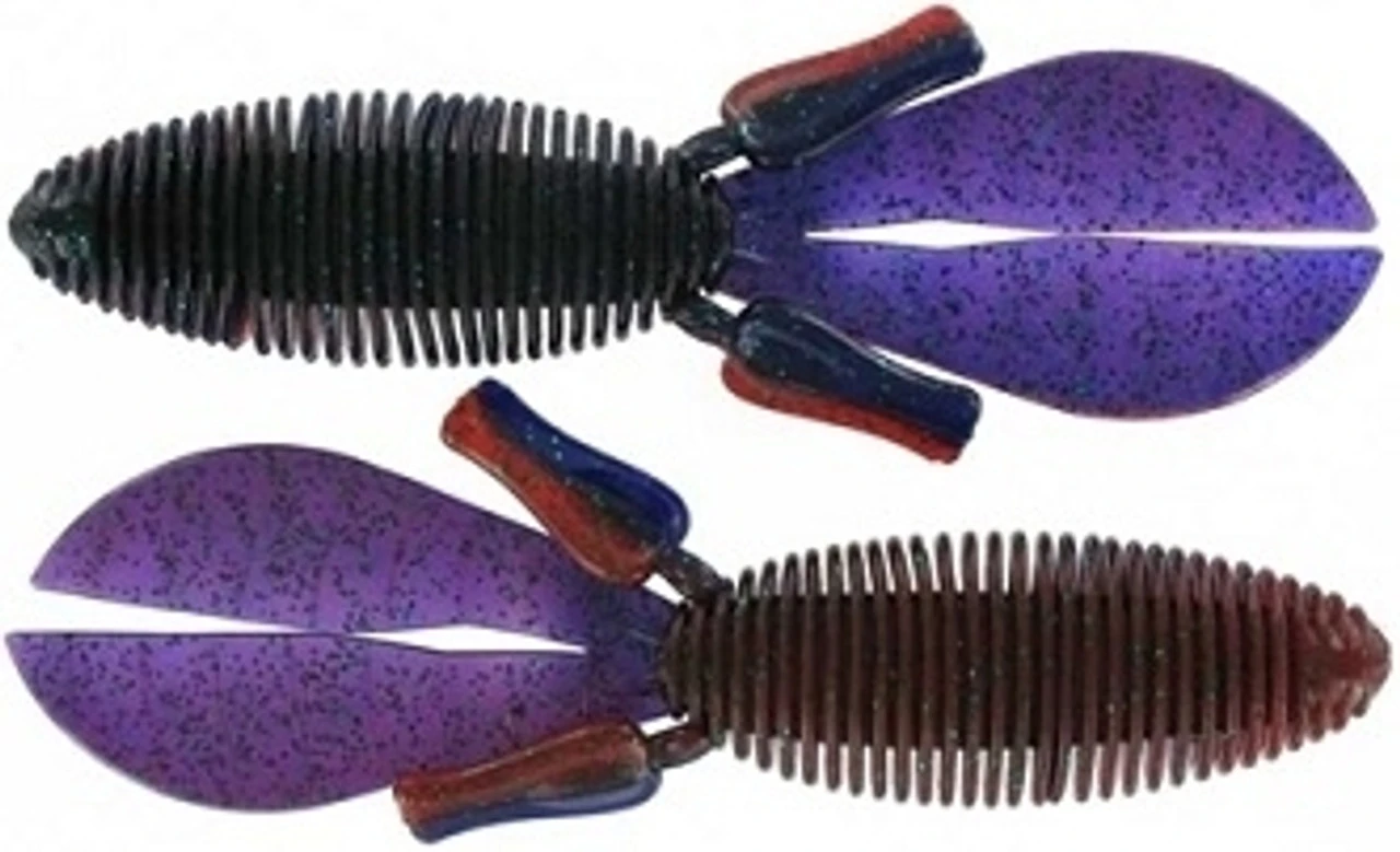 The Missile Baits D Bomb has become synonymous with pitching and flipping. The D Bomb is a bulky 4″ creature bait with a unique ribbed body that displaces lots of water resulting in a straight fall. With his crushing Elite Series win, Ish Monroe proved the effectiveness of the bulky beaver style plastic. The heavy vegetation and big bass in Lake Okeechobee met their match when Monroe paired the D-Bomb with a Paycheck Baits Punch Skirt and a 1.5oz Tungsten flipping weight. After four days of hand-to-hand combat with giant bass, Monroe reigned victorious amassing a total weight of over 100lbs and collecting the trophy. The real key to this bait is the flat plastic tail that sails when left connected or flaps wildly when separated. The details are what make this bait – one such design element is the thing plastic body which results in easier hook penetration, however, the plastic in the head of the bait keeps the hook in place.